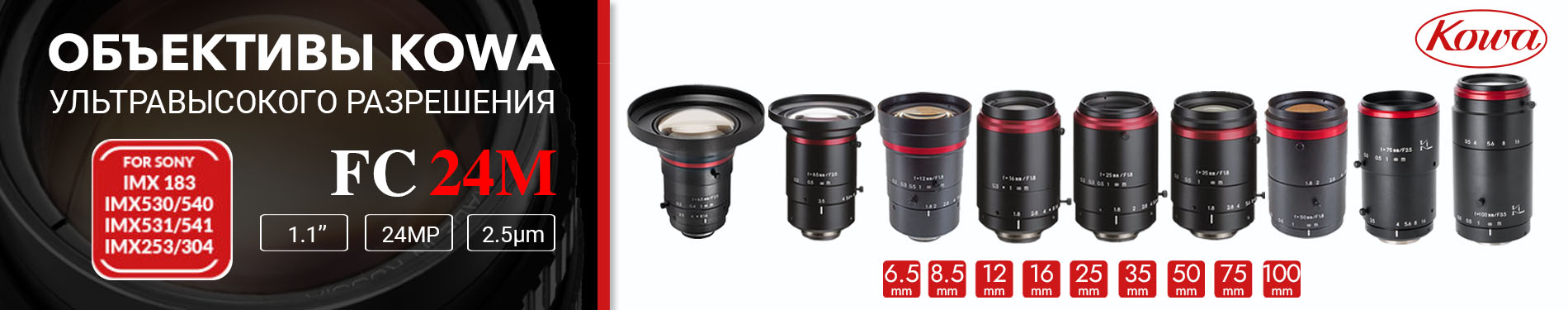 Объективы с ИК-коррекцией для 24-х мегапиксельных сенсоров формата 1.1 дюйм.